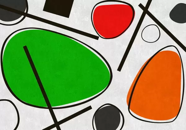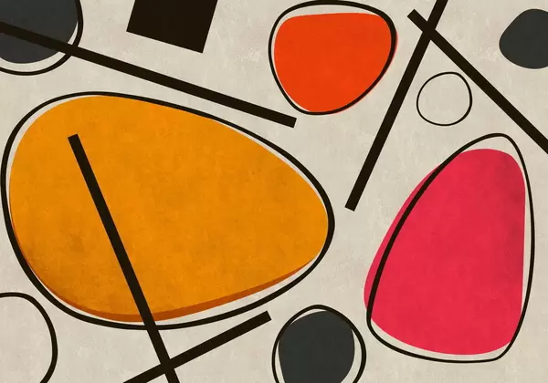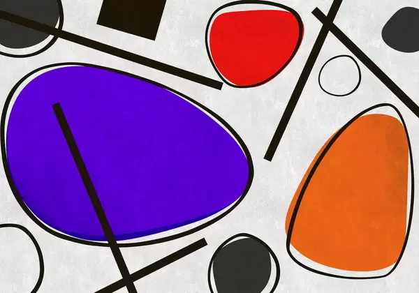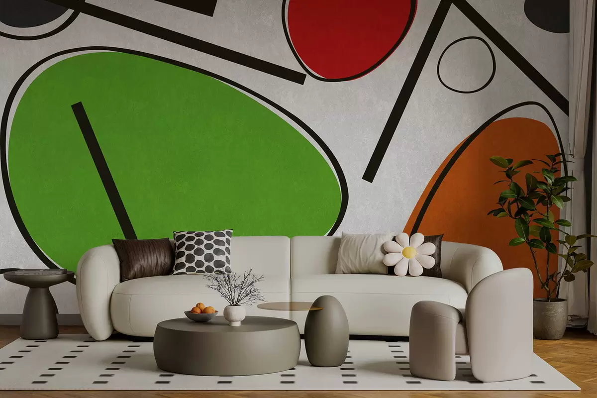 Papel de pared Formas geométricas abstractas con líneas y áreas de colores vivos. Nr. w05017v1