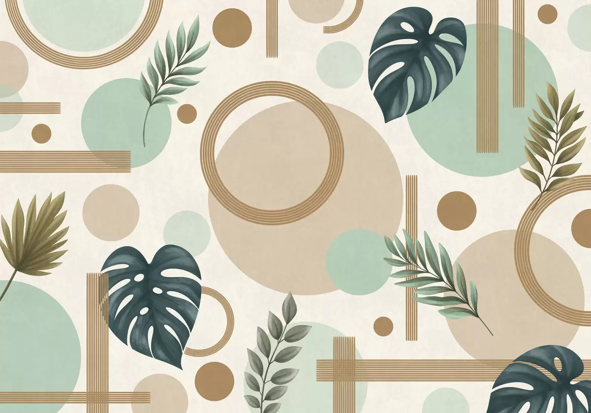 Papel de pared Patrón geométrico con hojas en tonos verdes. Nr. w05018v1