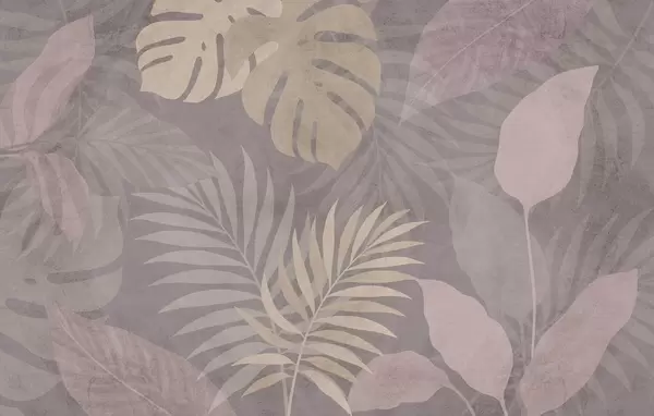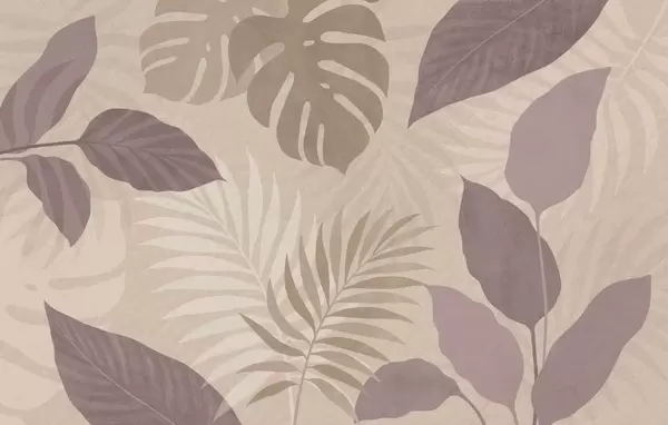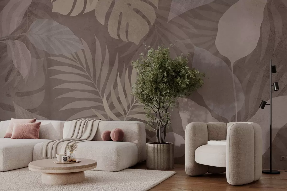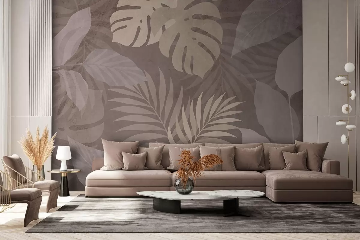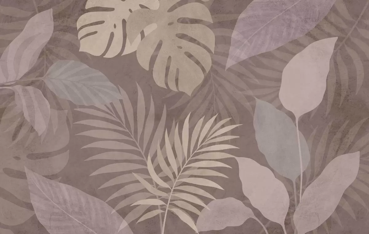 Papel de pared hojas tropicales texturizadas sobre fondo chocolate Nr. w05063v2