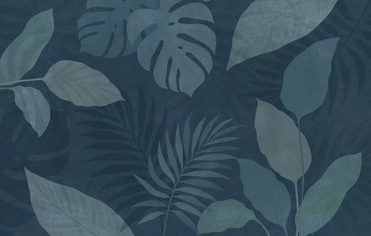 Papel de pared hojas tropicales texturizadas sobre un fondo azul oscuro Nr. w05063v3