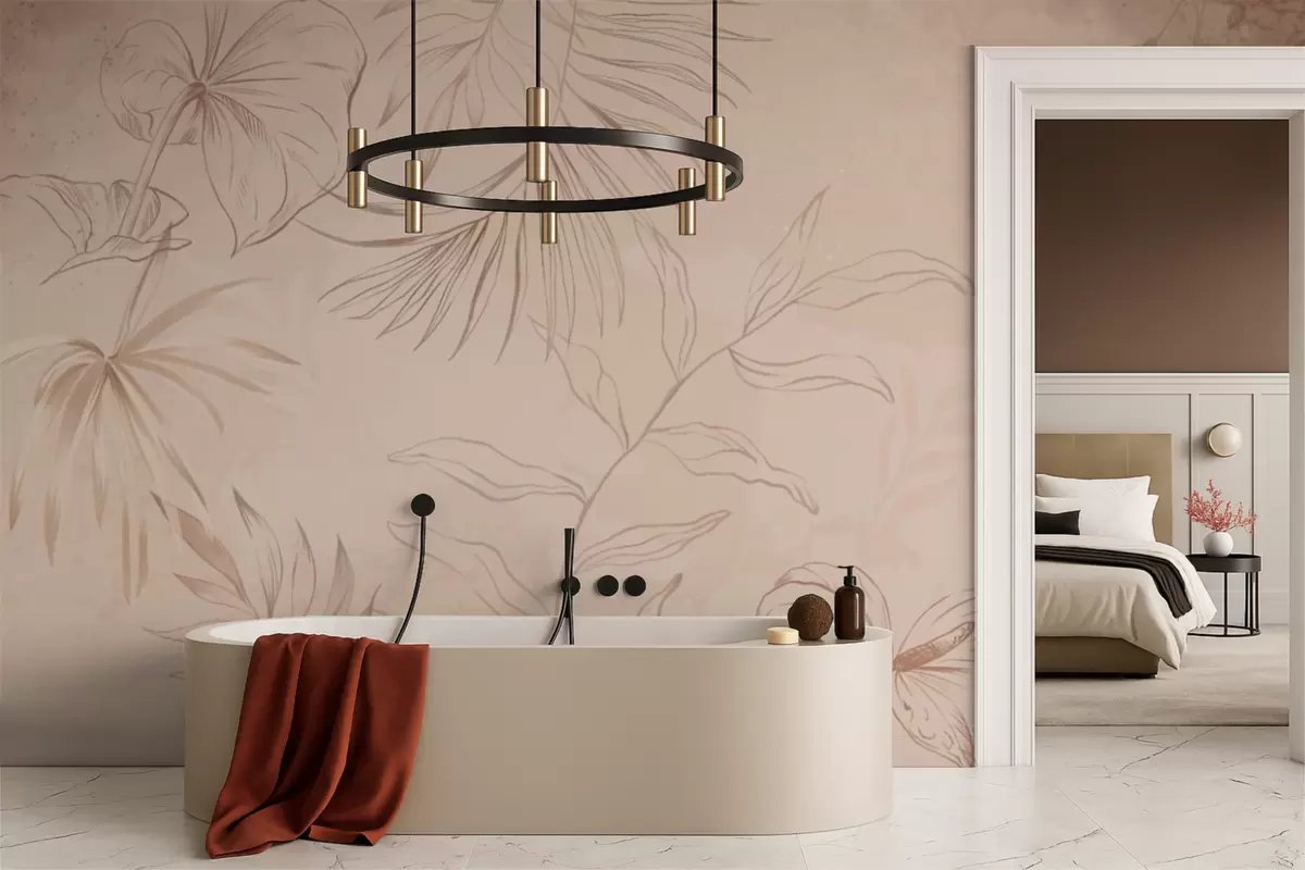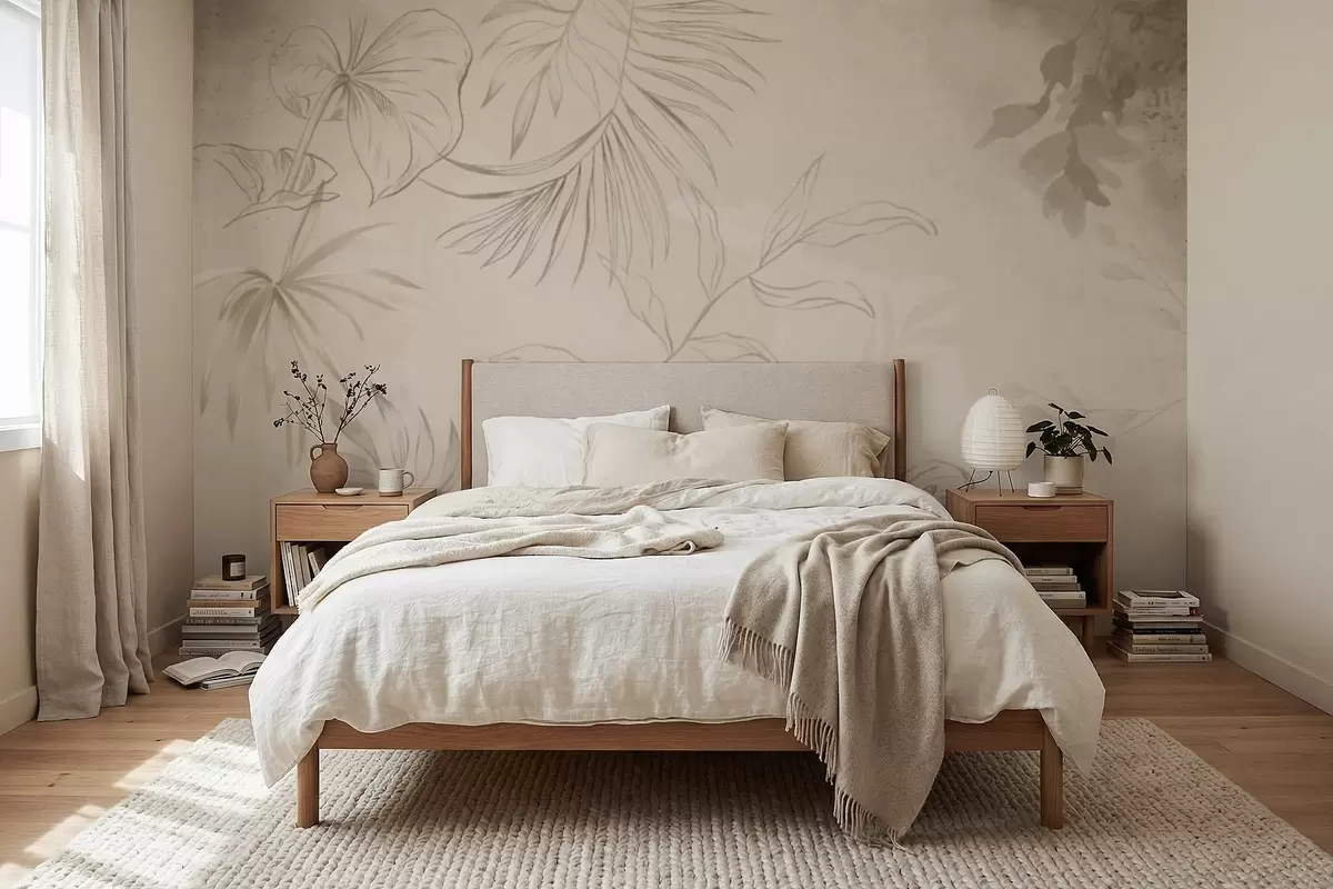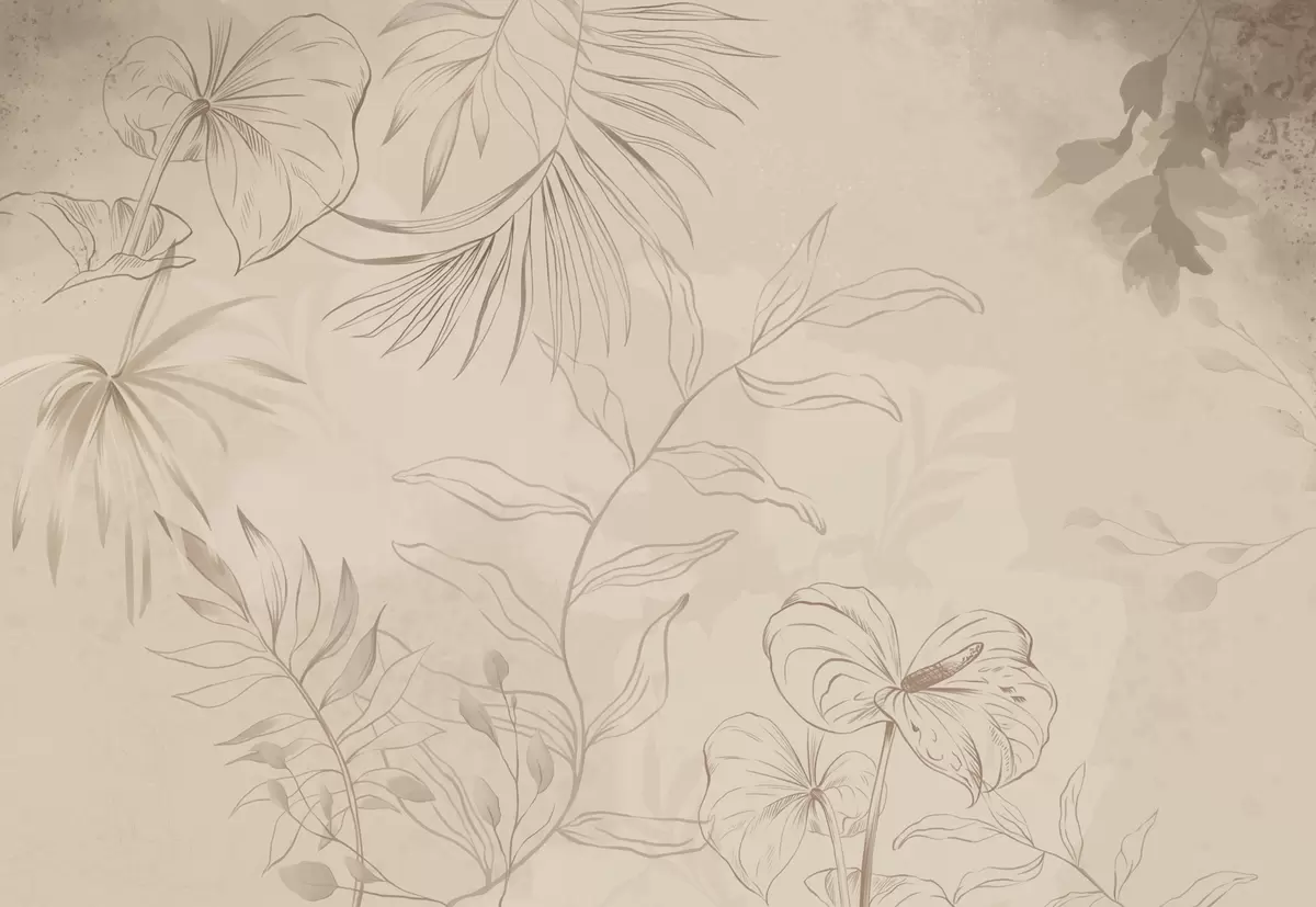 Papel de pared Plantas lineales sobre fondo beige texturizado Nr. w05128