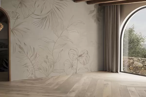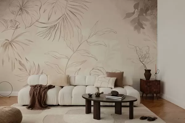 Papel de pared Plantas lineales sobre fondo beige texturizado Nr. w05128