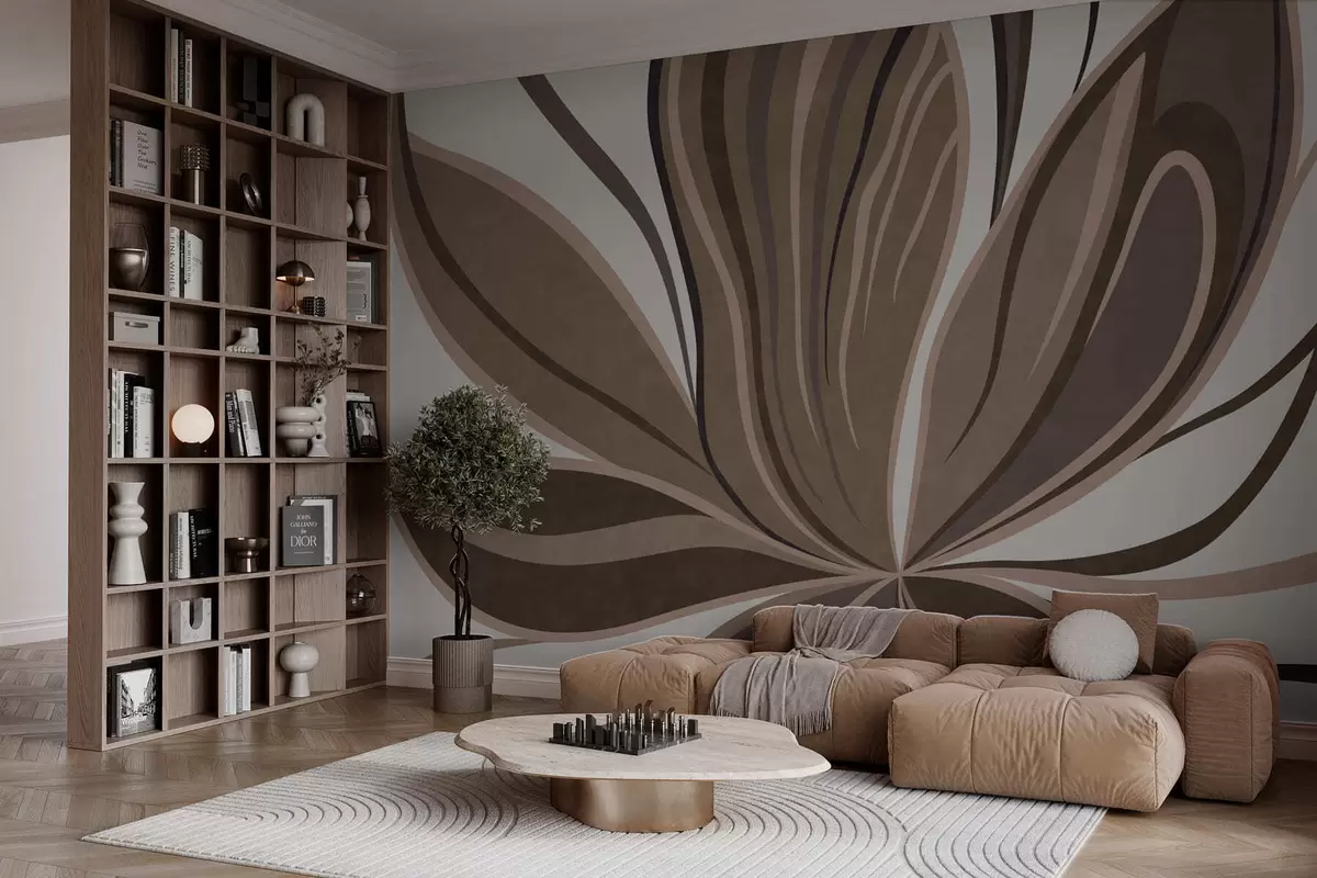 Papel de pared Flor estilizada con líneas fluidas en tonos marrones Nr. w05147