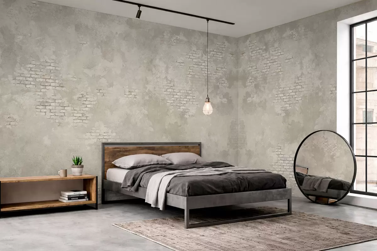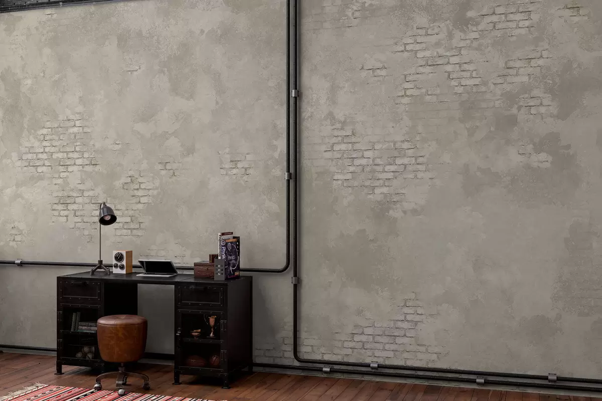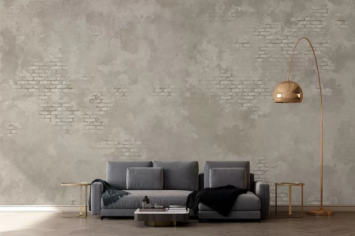 Papel de pared Yeso ligero de estilo grunge con zonas de ladrillo visto Nr. w05161v1
