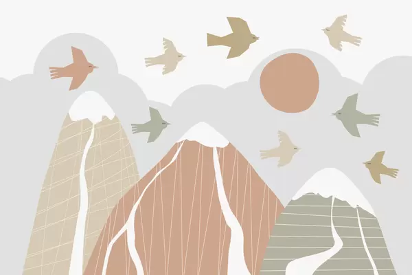 Papel de pared Las montañas y las aves escandinavas Nr. w05166