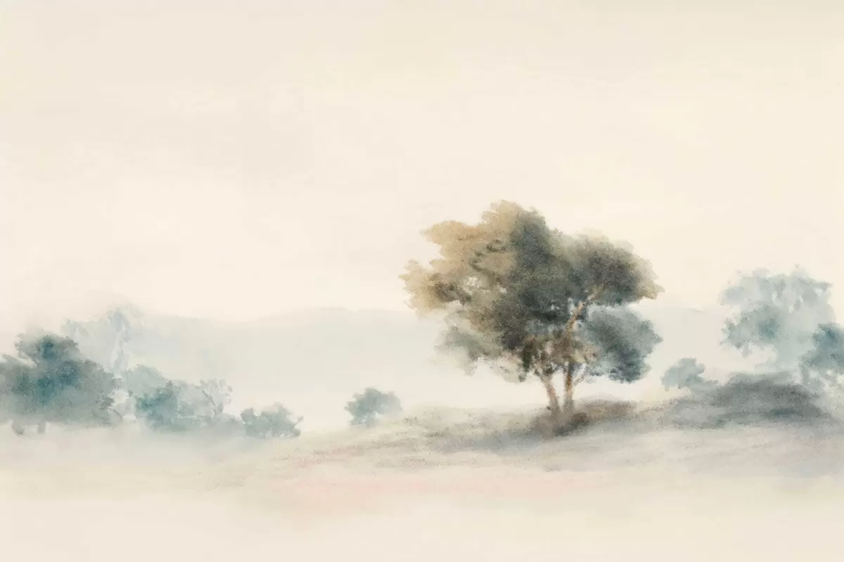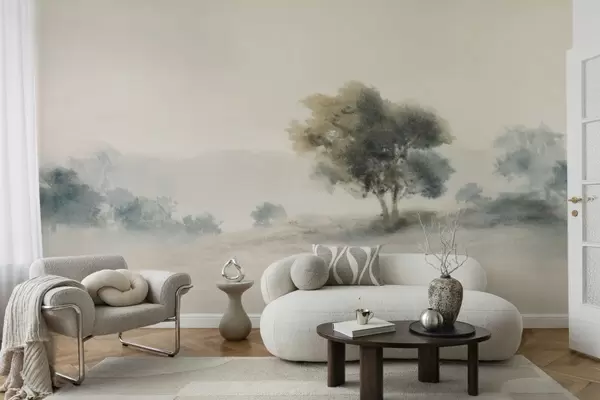 Papel de pared Paisaje tranquilo con un árbol y formas suaves y difuminadas. Nr. w05223v1