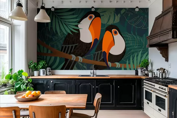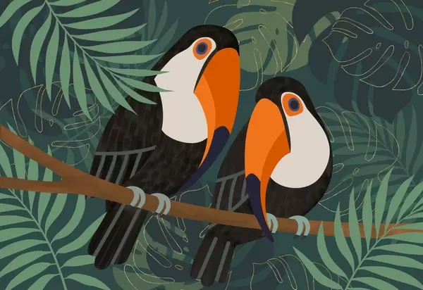 Papel de pared una pareja de tucanes en una rama, con estilo afro Nr. w05239