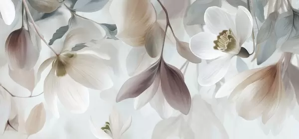 Papel de pared una delicada composición de flores y hojas en tonos pastel Nr. w05240