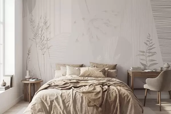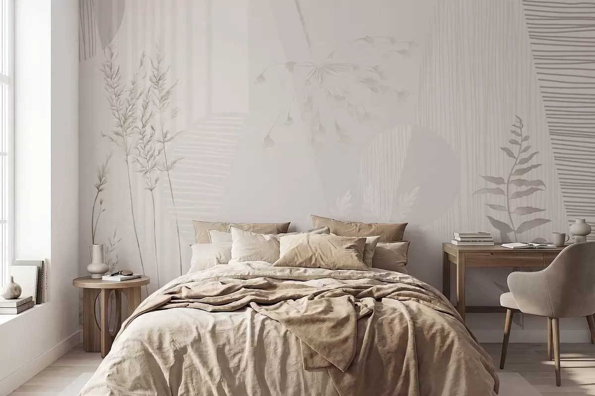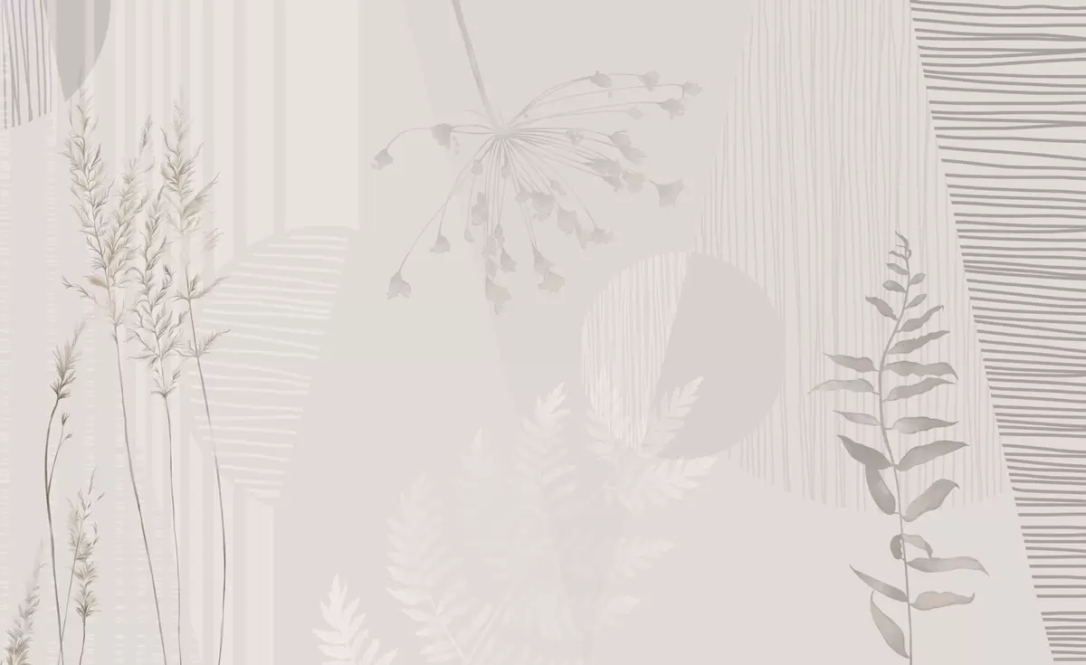Papel de pared Composición minimalista con hierbas y formas Nr. w05318