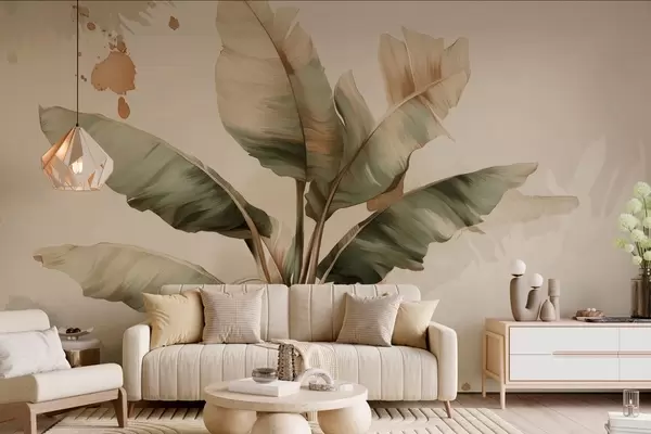 Papel de pared un gran y pintoresco racimo de hojas de plátano con toques de estilo retro Nr. w05384
