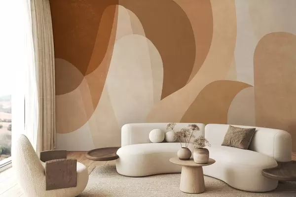 Papel de pared curvas abstractas en tonos marrones, beige y rojizos Nr. w05387