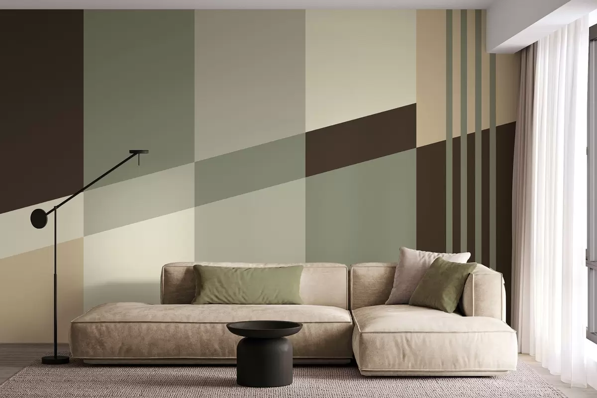 Papel de pared Diseños geométricos discretos en tonos oliva, beige y marrón Nr. w05390