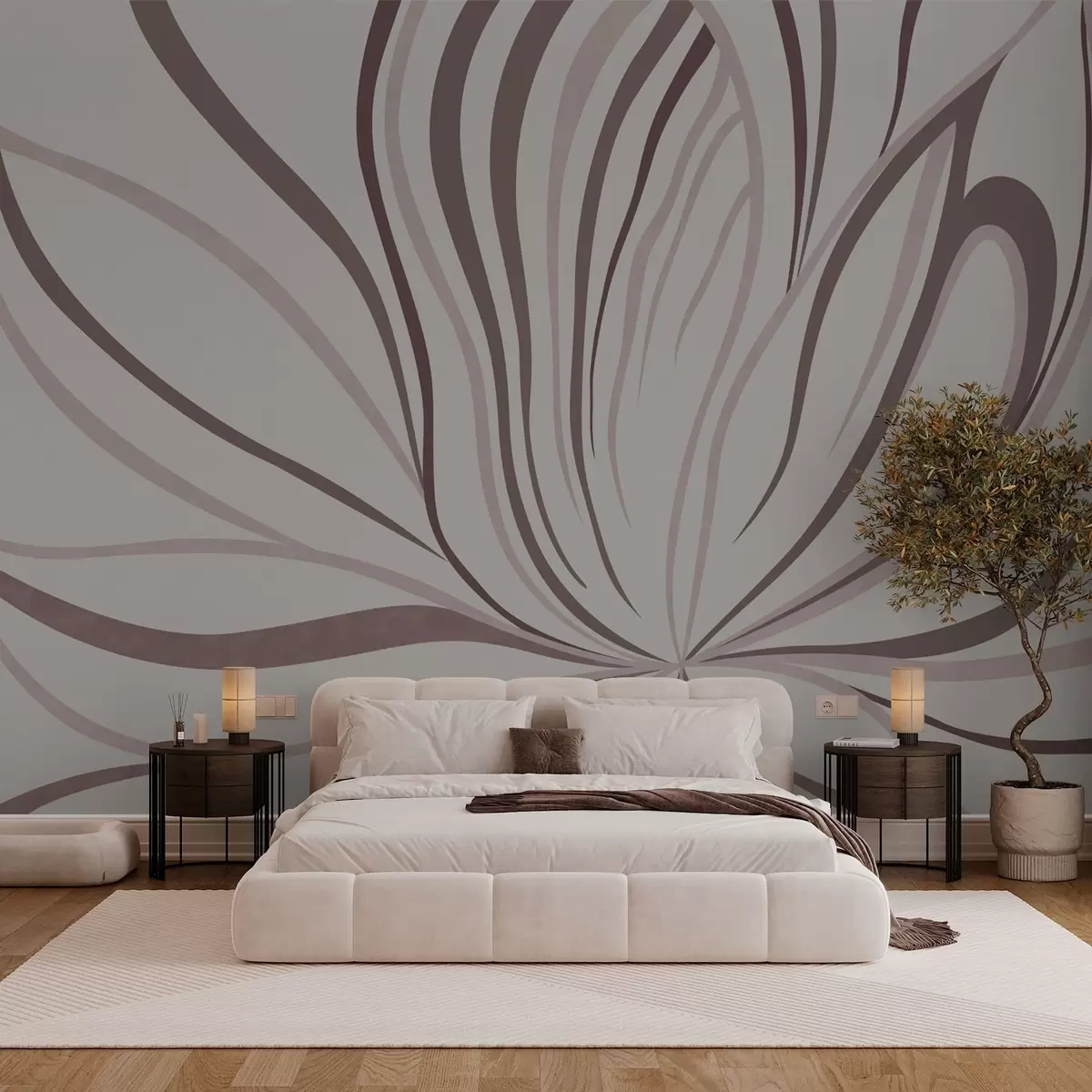 Papel de pared Flor estilizada con líneas suaves en tonos rosa y beige Nr. w05392v1