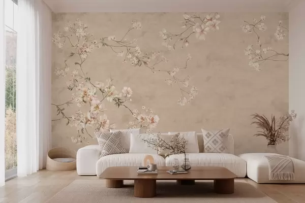 Papel de pared Ramas florales de estilo chinoiserie sobre un fondo beige cálido Nr. w05427v2