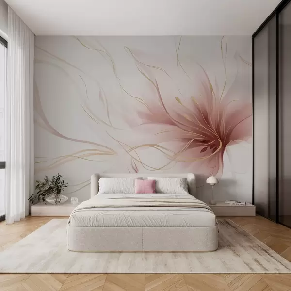 Papel de pared Una flor rosa abstracta con líneas fluidas al estilo del arte fluido Nr. w05428v1