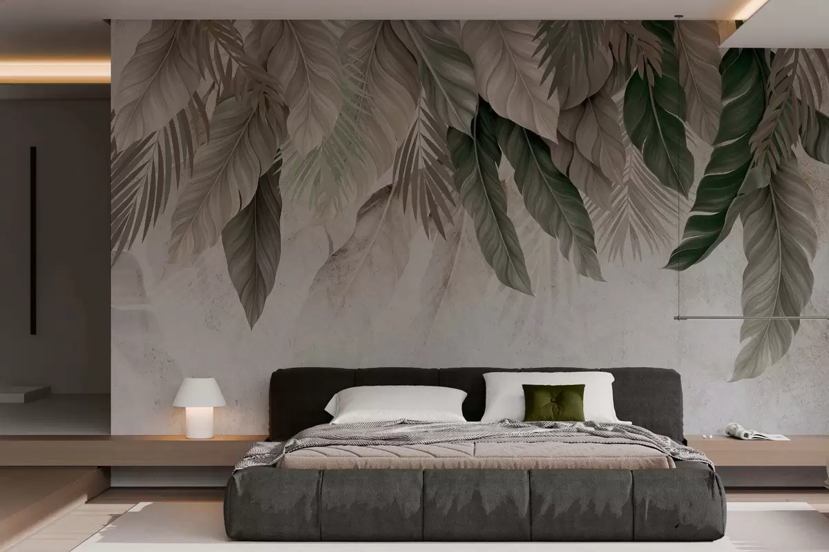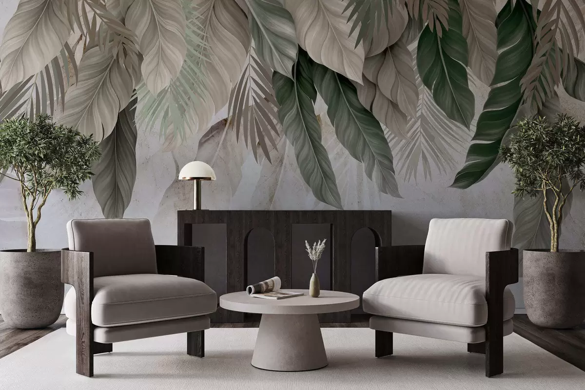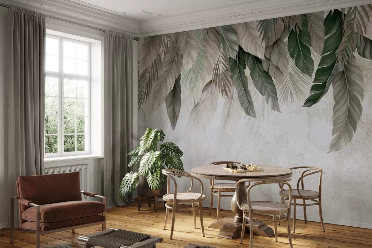 Papel de pared Hojas tropicales colgantes sobre hormigón Nr. w05521