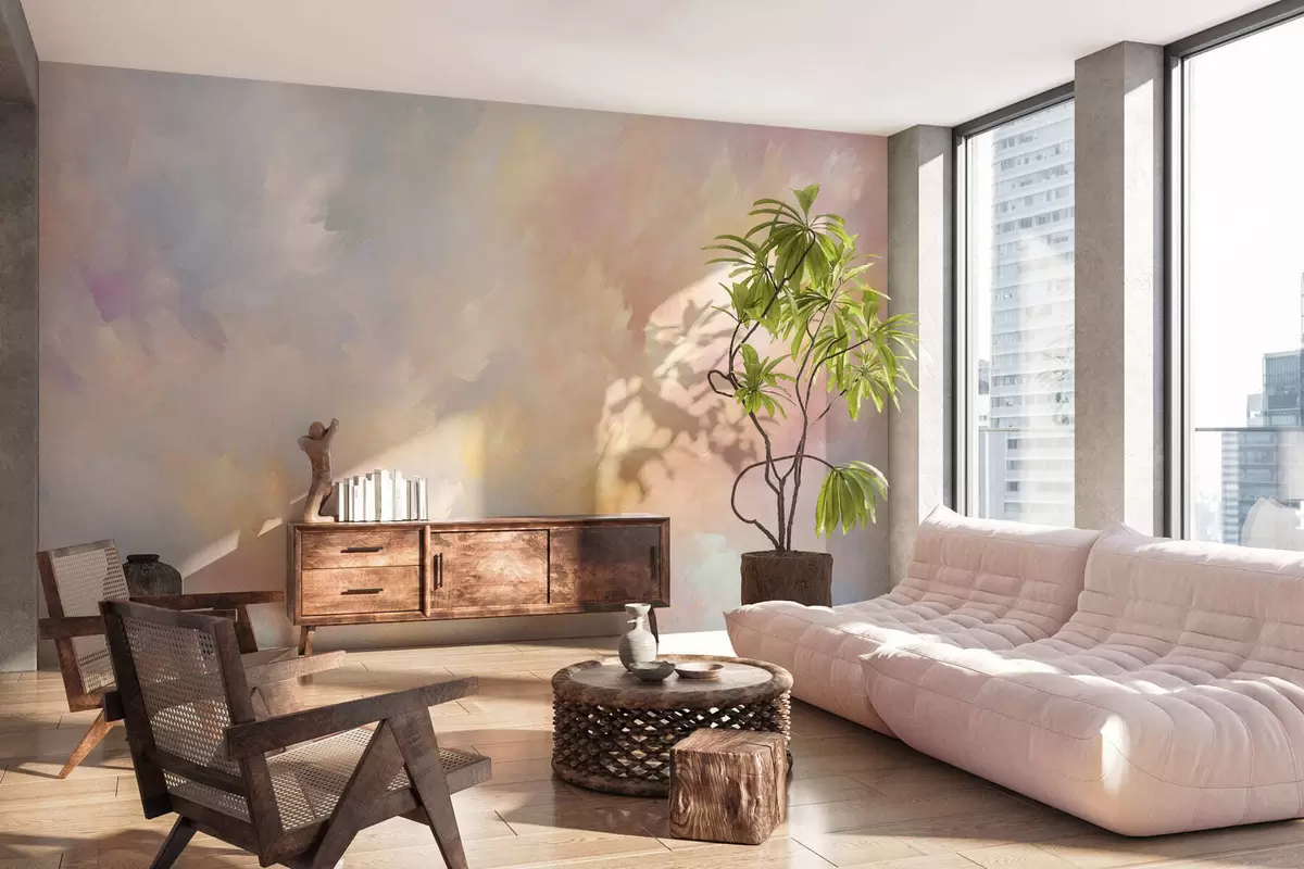 Se puede limpiar suavemente con una esponja suave. Los murales de pared con recubrimiento de barniz pueden limpiarse con agua.