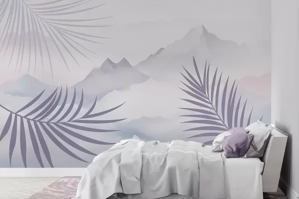 Papel de pared Hojas de palmera con las montañas de fondo Nr. w05548