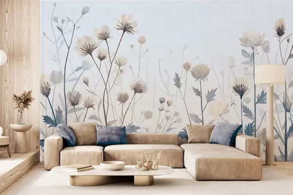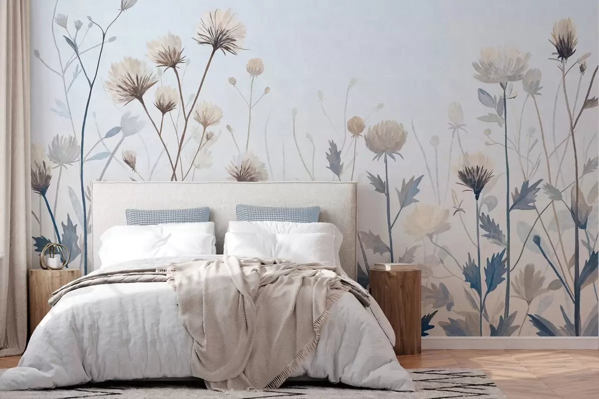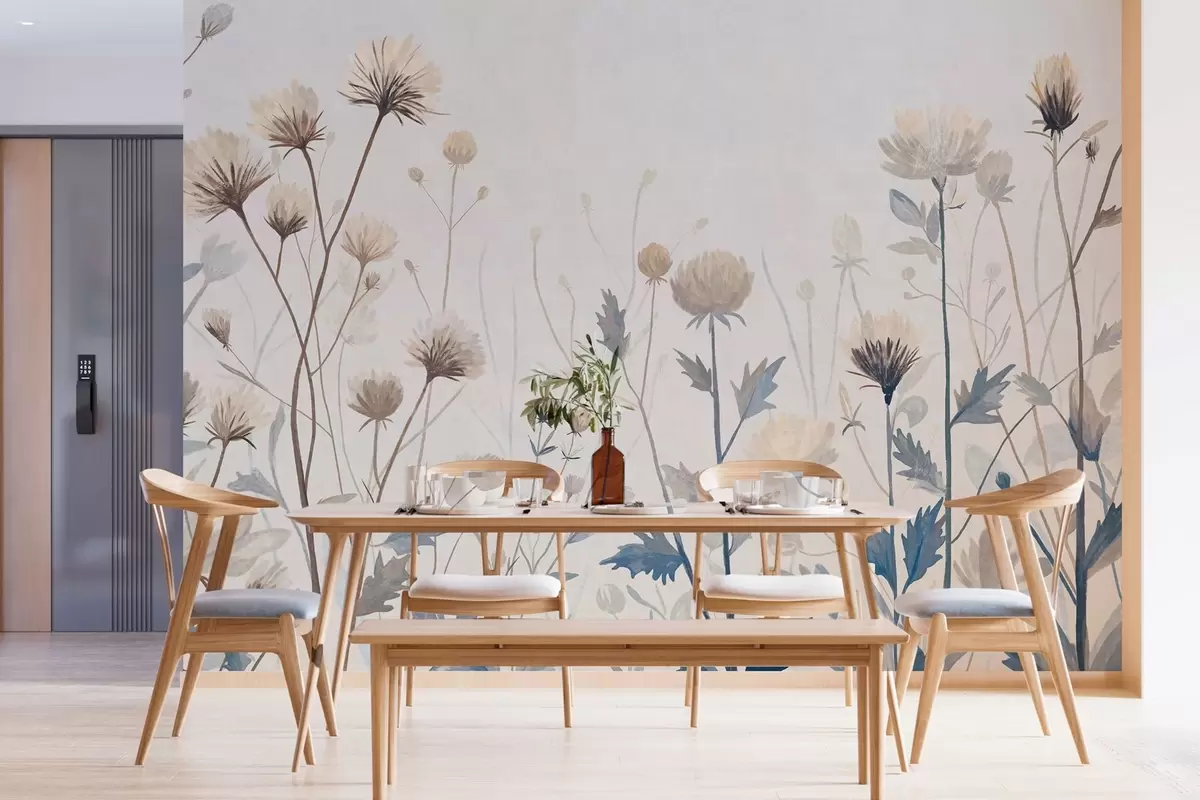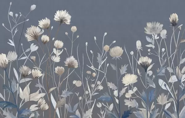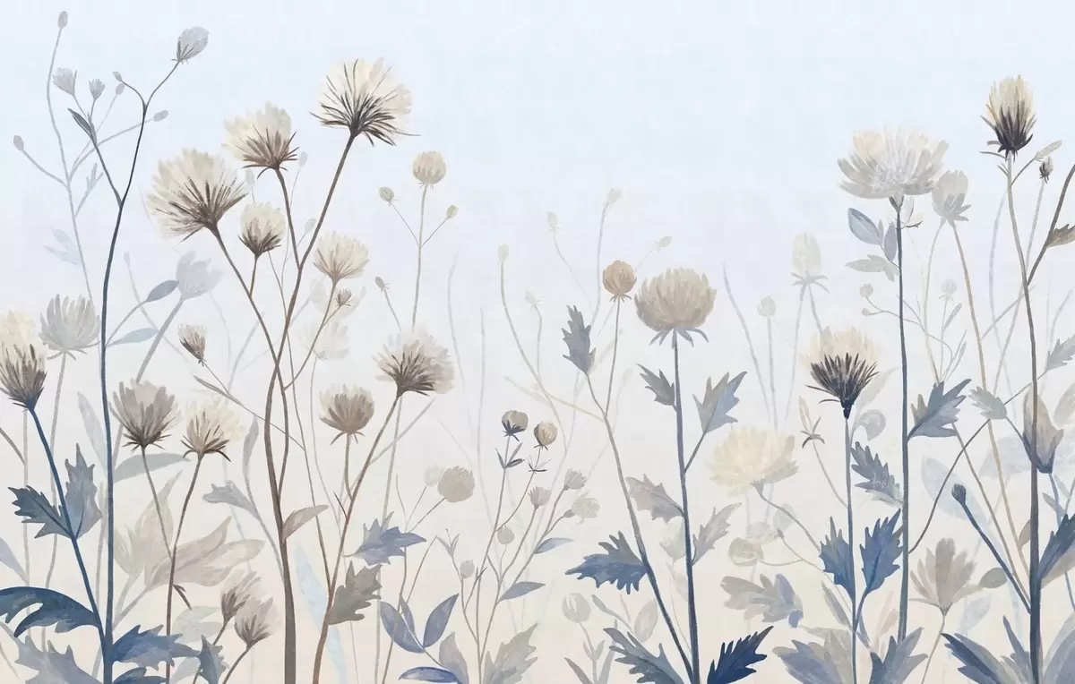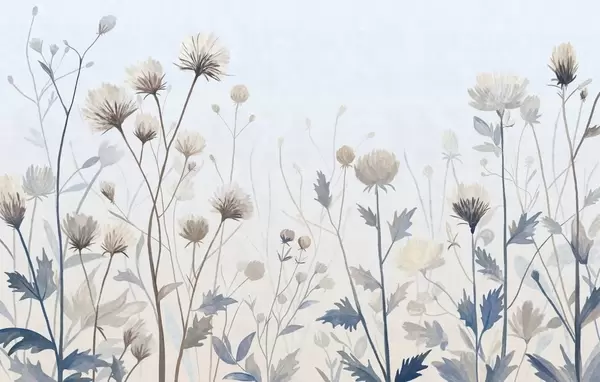Papel de pared Hierbas y flores silvestres pintadas en un estilo paisajístico sobre un fondo claro Nr. w05563