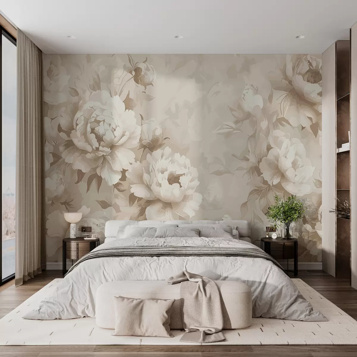 Papel de pared Peonías en colores pálidos y delicados. Nr. w07891