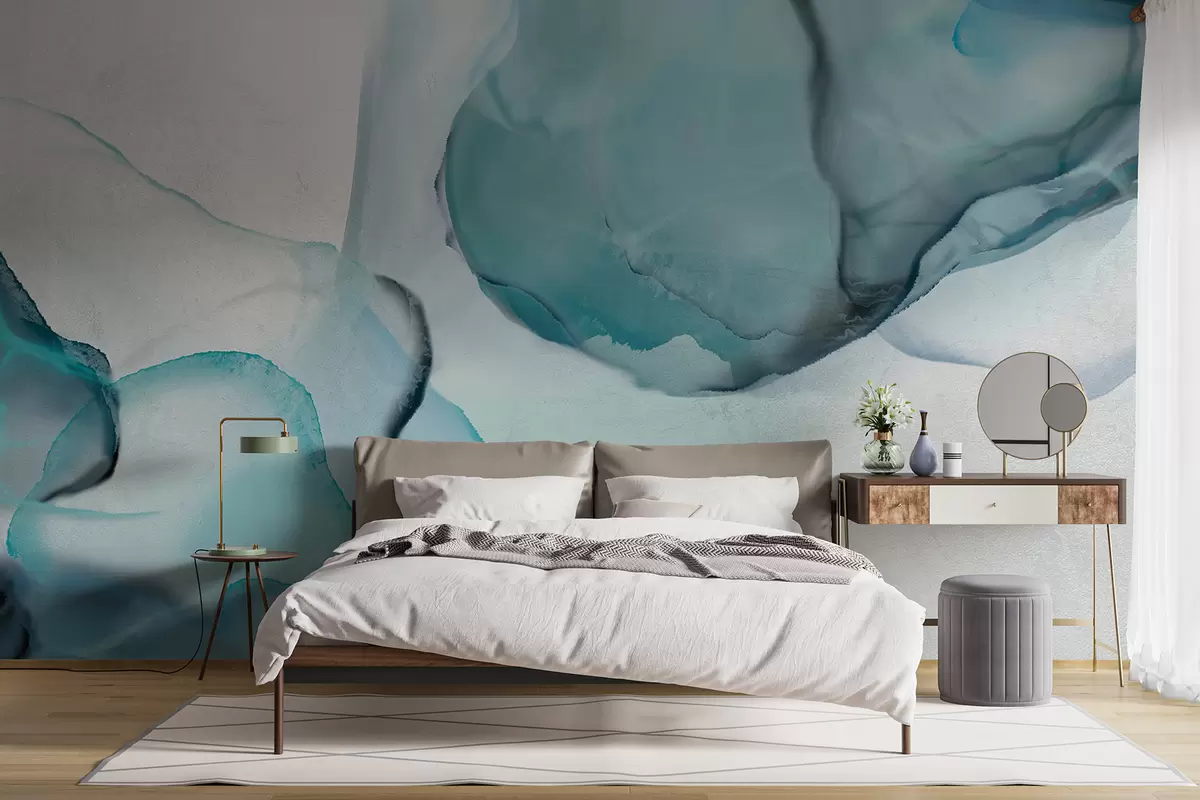 Papel de pared Arte fluido abstracto en azul y blanco, que se asemeja a agua y tinta que fluyen. Nr. w07927