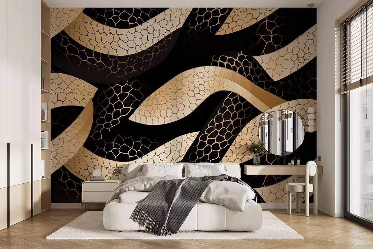 Papel de pared Motivo entretejido beige-negro Nr. w08964
