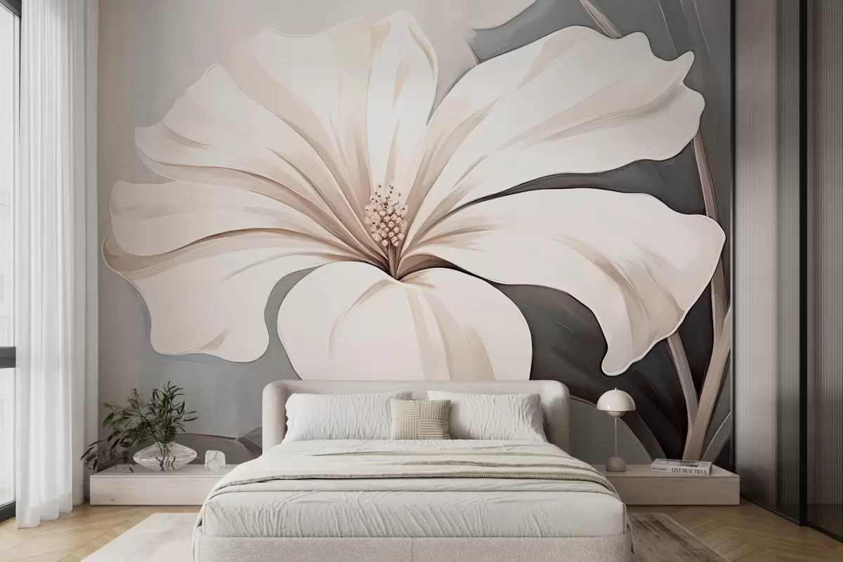 Papel de pared Gran flor blanca con pétalos sobre fondo azul grisáceo Nr. w09033