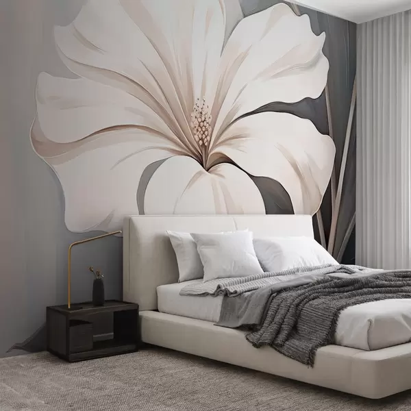 Papel de pared Gran flor blanca con pétalos sobre fondo azul grisáceo Nr. w09033