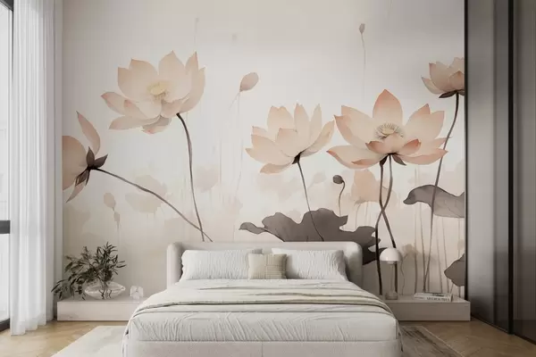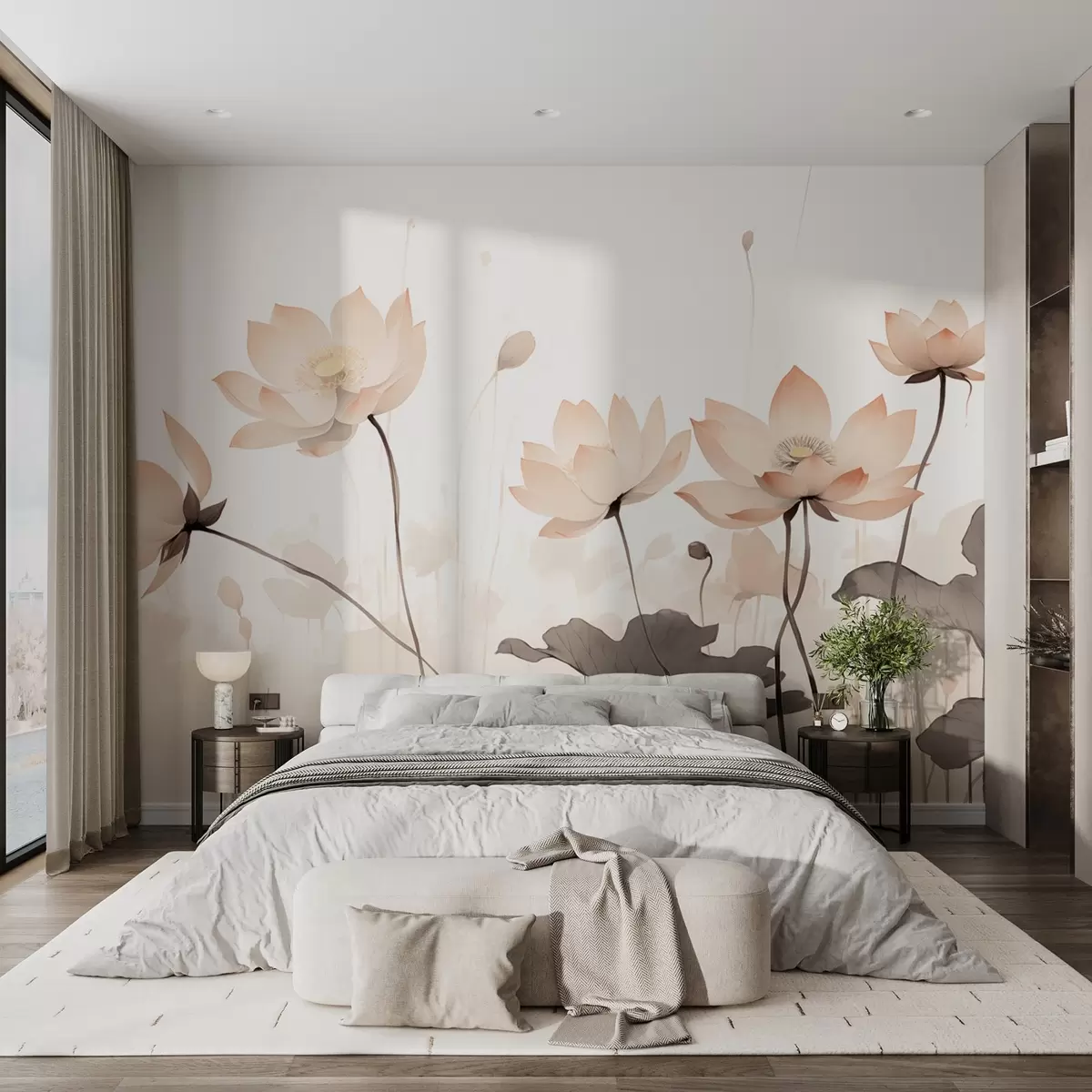 Papel de pared Nenúfares en delicados tonos claros en estilo acuarela Nr. w09035