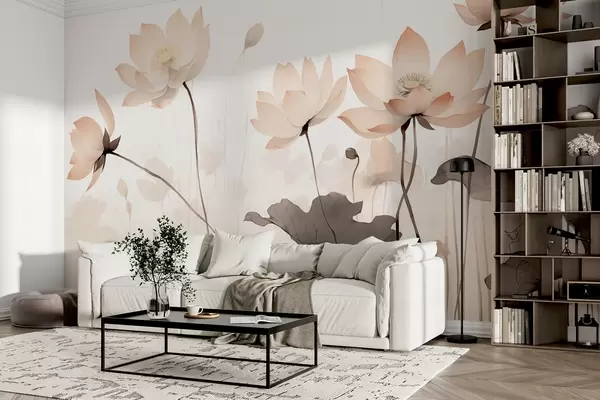 Papel de pared Nenúfares en delicados tonos claros en estilo acuarela Nr. w09035
