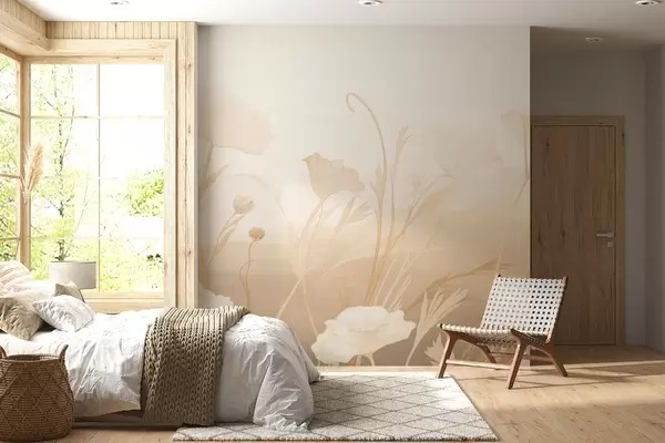 Papel de pared Amapolas blancas en tonos beige-gris Nr. w09041