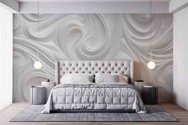 Papel de pared Arte moderno abstracto blanco con remolinos y ondas fluidas, textura suave, diseño elegante, estética minimalista Nr. w09059