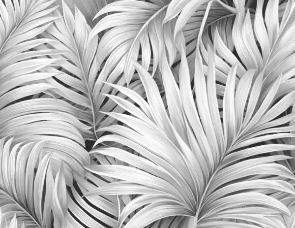 Papel de pared Hojas de palmera tropical con textura monocromática, creando un estampado tropical y botánico Nr. w09145