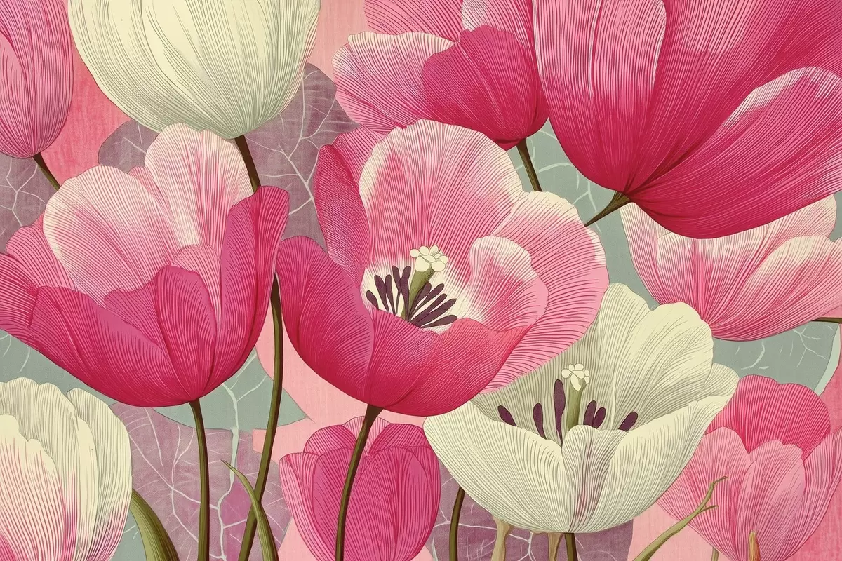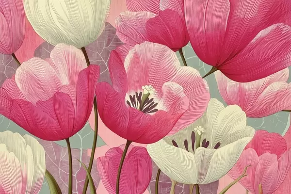 Papel de pared Amapolas vivas con hojas gráficas de fondo Nr. w09152