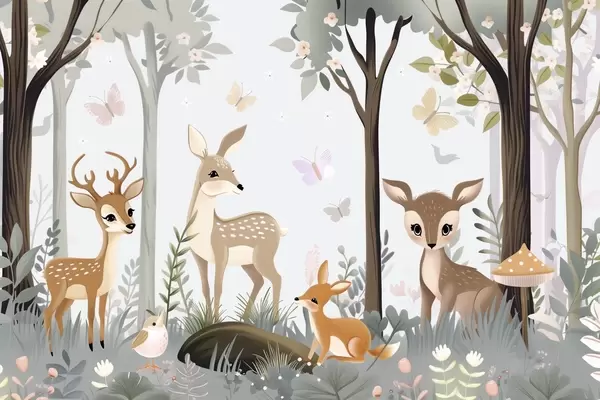 Papel de pared Caprichosos animales del bosque en tonos azules Nr. w09227v1