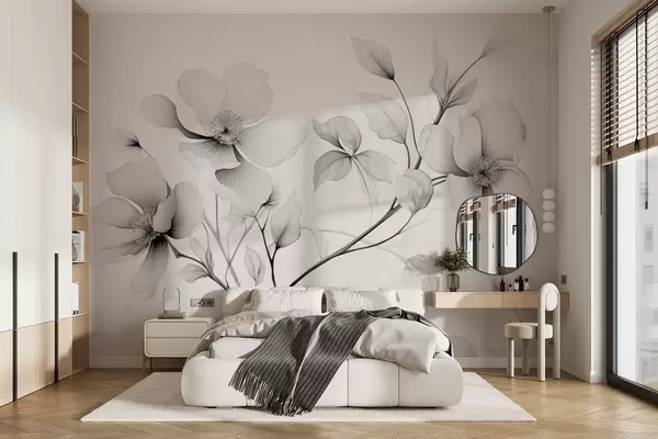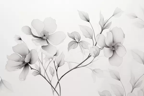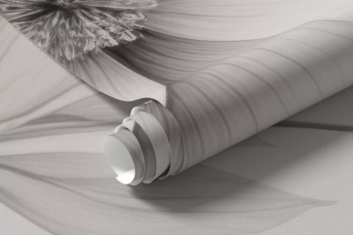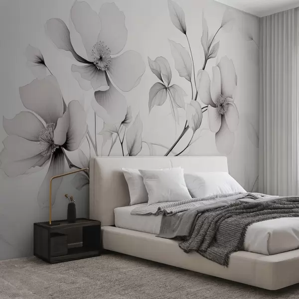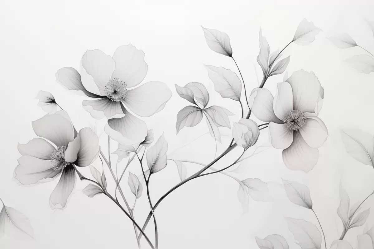 Papel de pared Flores blancas y negras de líneas elegantes sobre fondo gris Nr. w09271