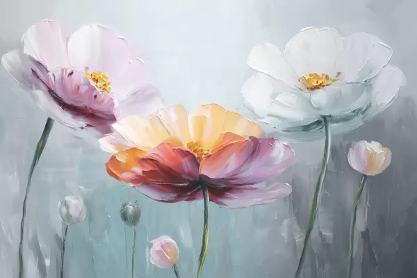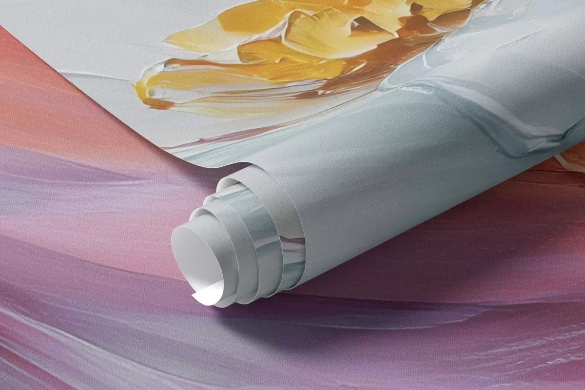 Papel de pared Flores brillantes en técnica de pintura al óleo sobre fondo azul Nr. w09310