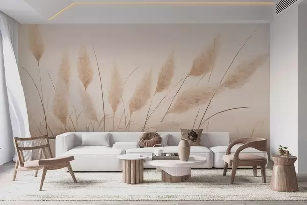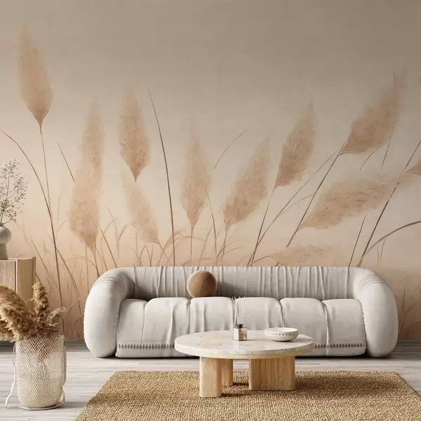 Papel de pared Hierba pampa de color beige suave en el campo Nr. w09324