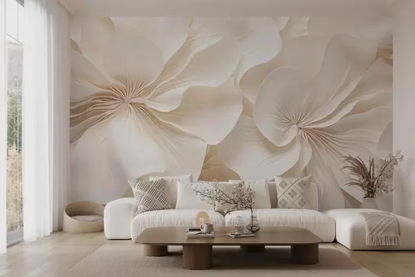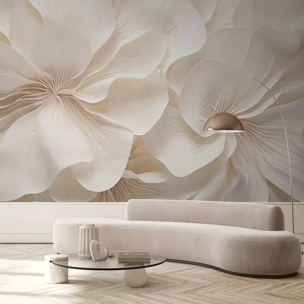 Papel de pared Primer plano de flores de textura cremosa con pétalos delicados y fluidos, creando un arreglo floral suave, elegante y con textura Nr. w09346