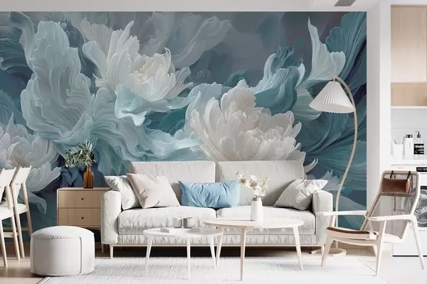 Papel de pared Flores abstractas en tonos azules y turquesas Nr. w09452