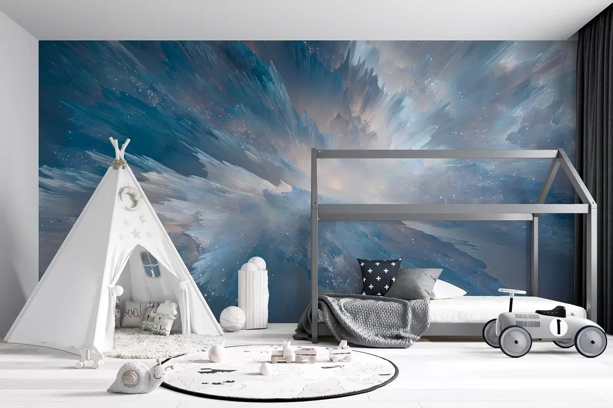 Papel de pared Resumen del resplandor cósmico del cielo en tonos azules helados. Nr. w09461