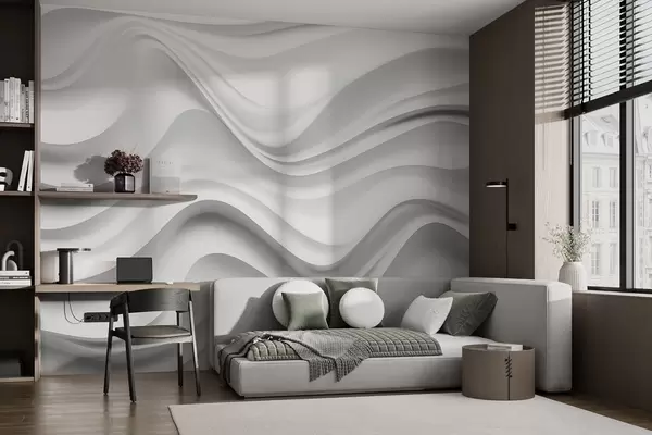 Papel de pared Composición abstracta en blanco y negro en 3D con ondas suaves. Nr. w09506