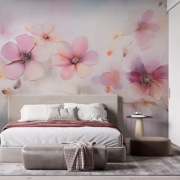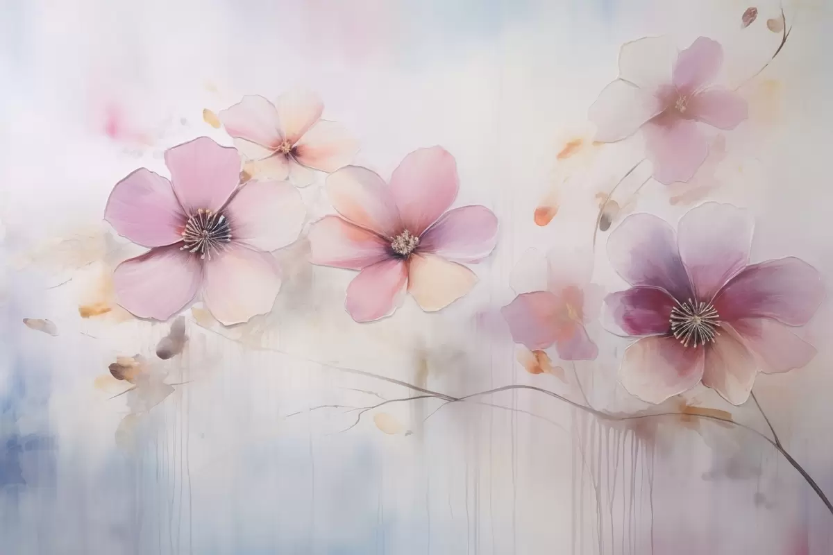Papel de pared Rama con flores rosas en estilo acuarela Nr. w09522