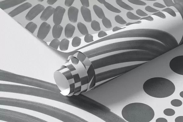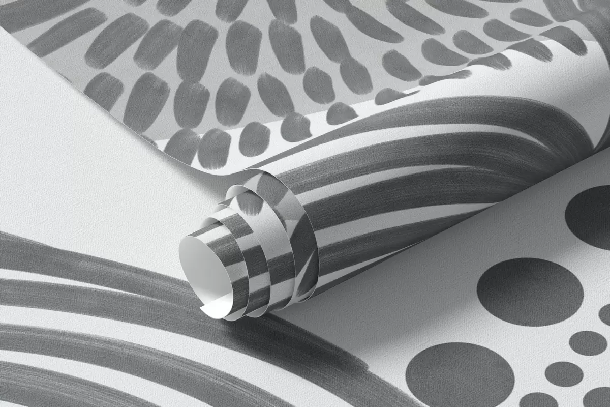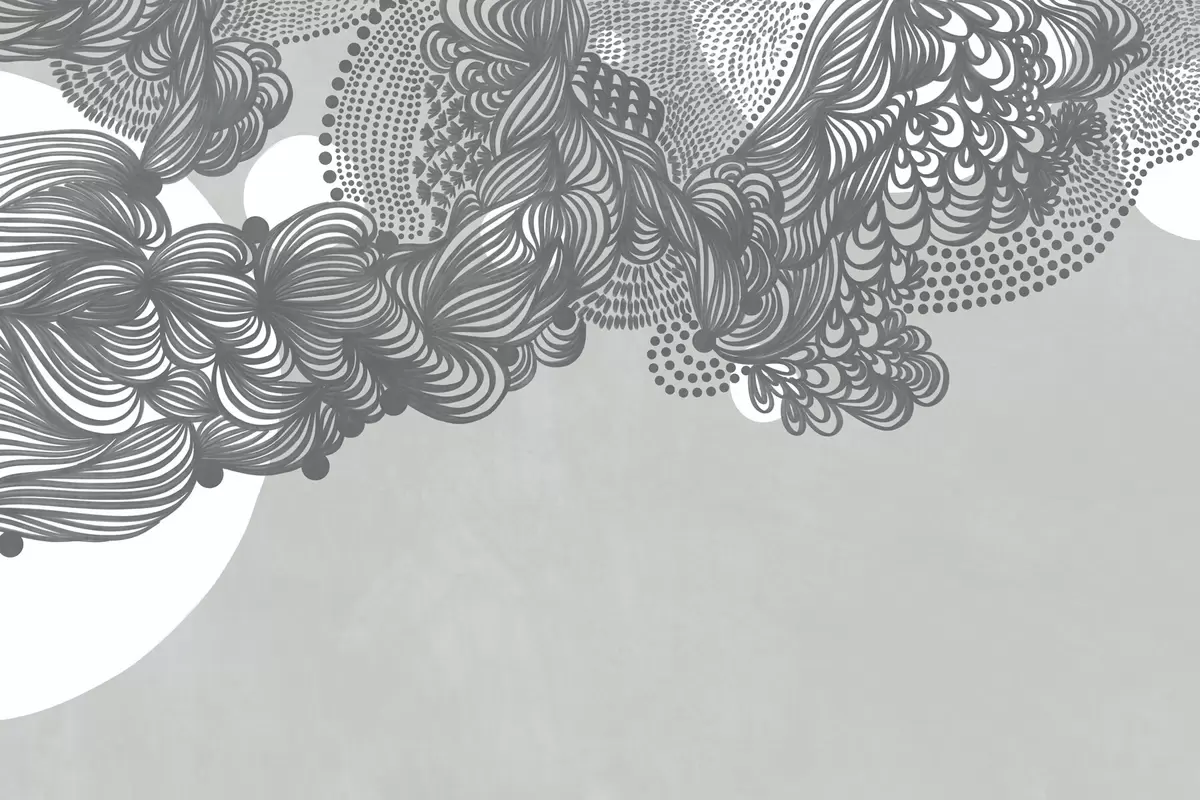 Papel de pared Diseño abstracto con textura sobre fondo gris, con líneas intrincadas y texturas punteadas. Nr. w09621v1