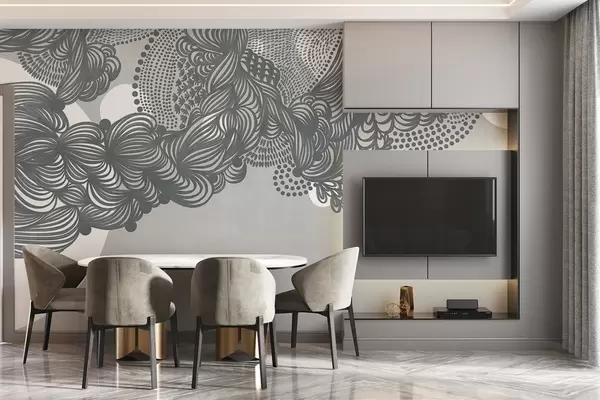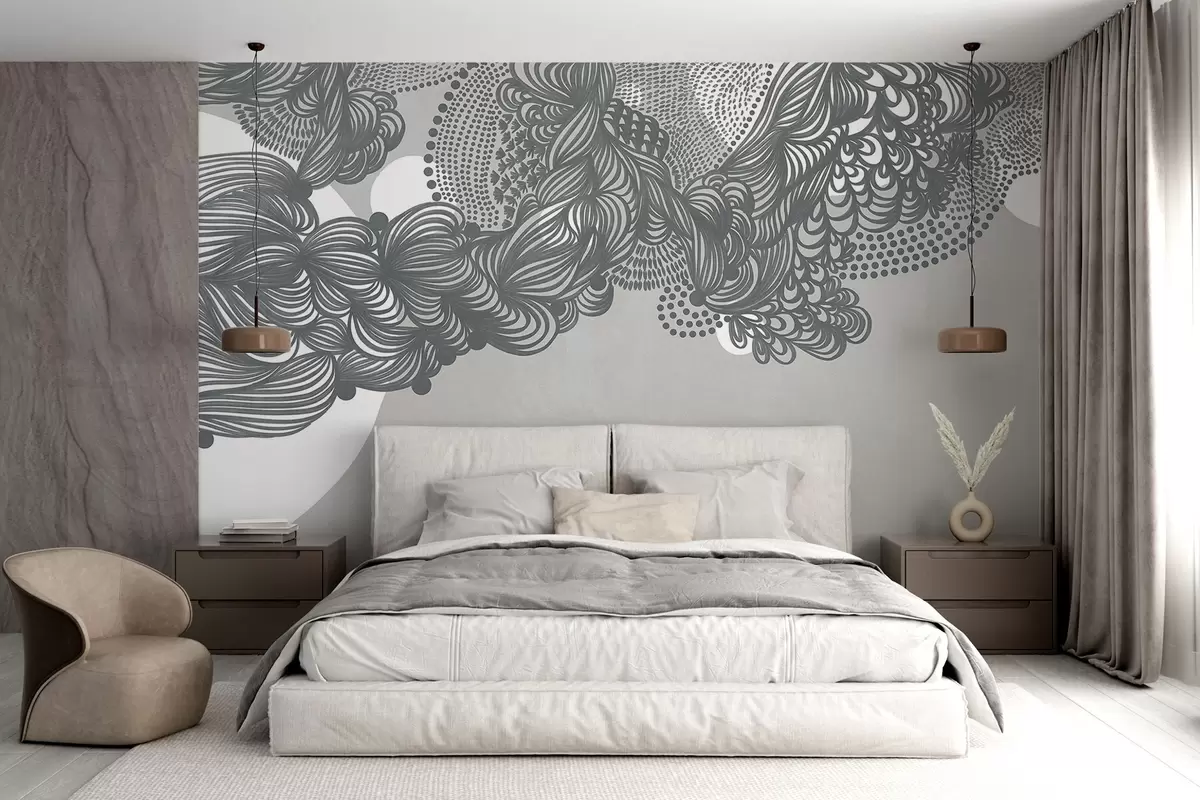 murales Diseño abstracto con textura sobre fondo gris, con líneas intrincadas y texturas punteadas. w09621v1