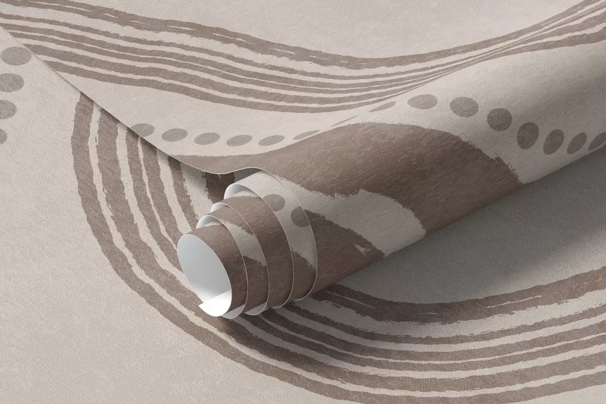 Papel de pared Líneas onduladas y puntos abstractos en marrón y beige, arte moderno con textura. Nr. w09747v1