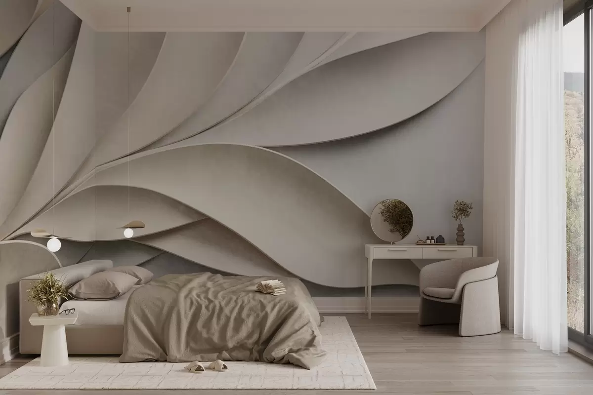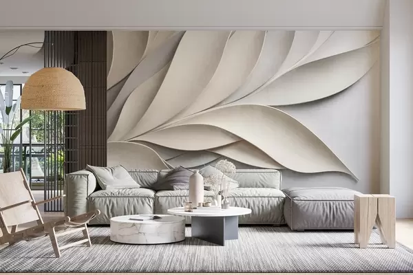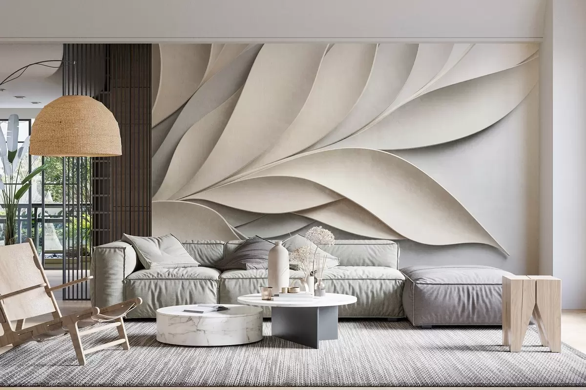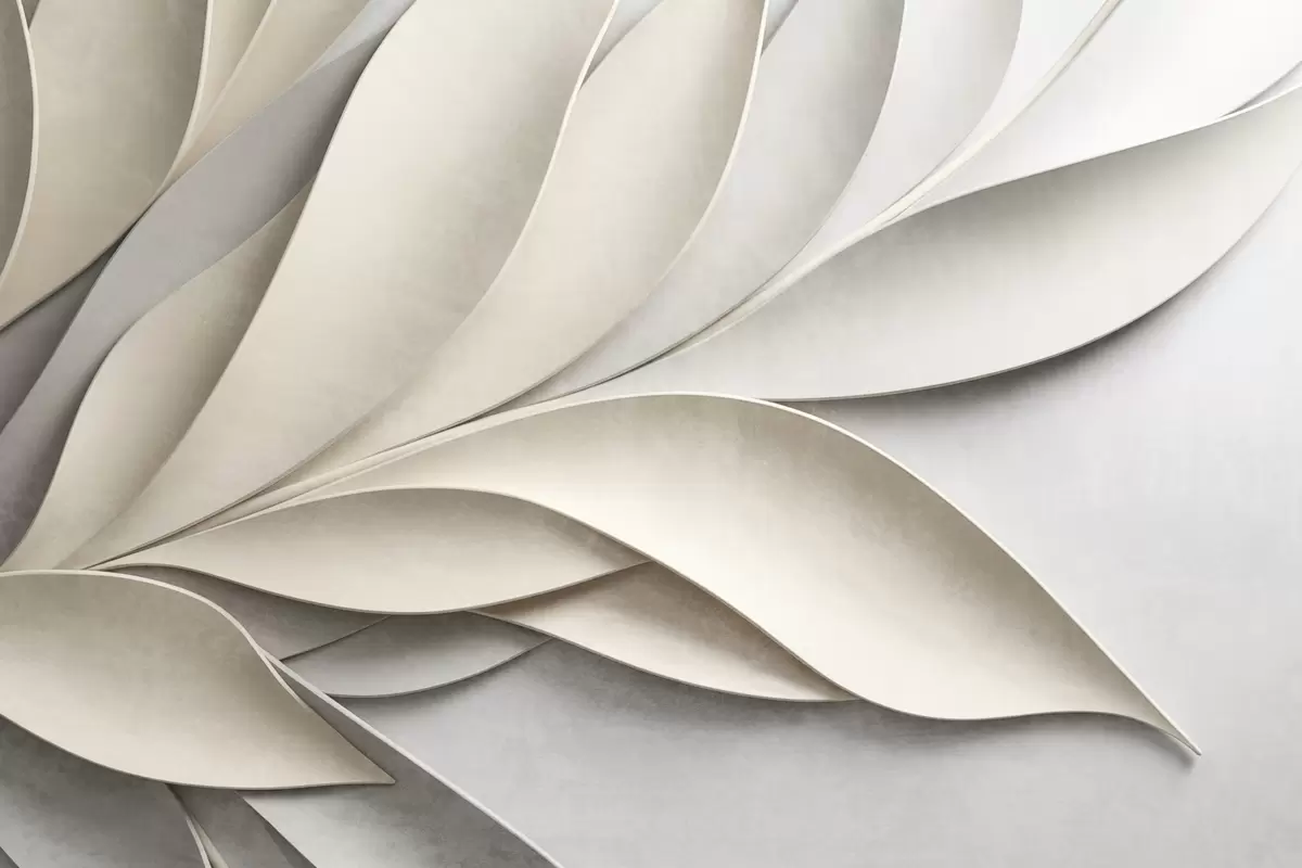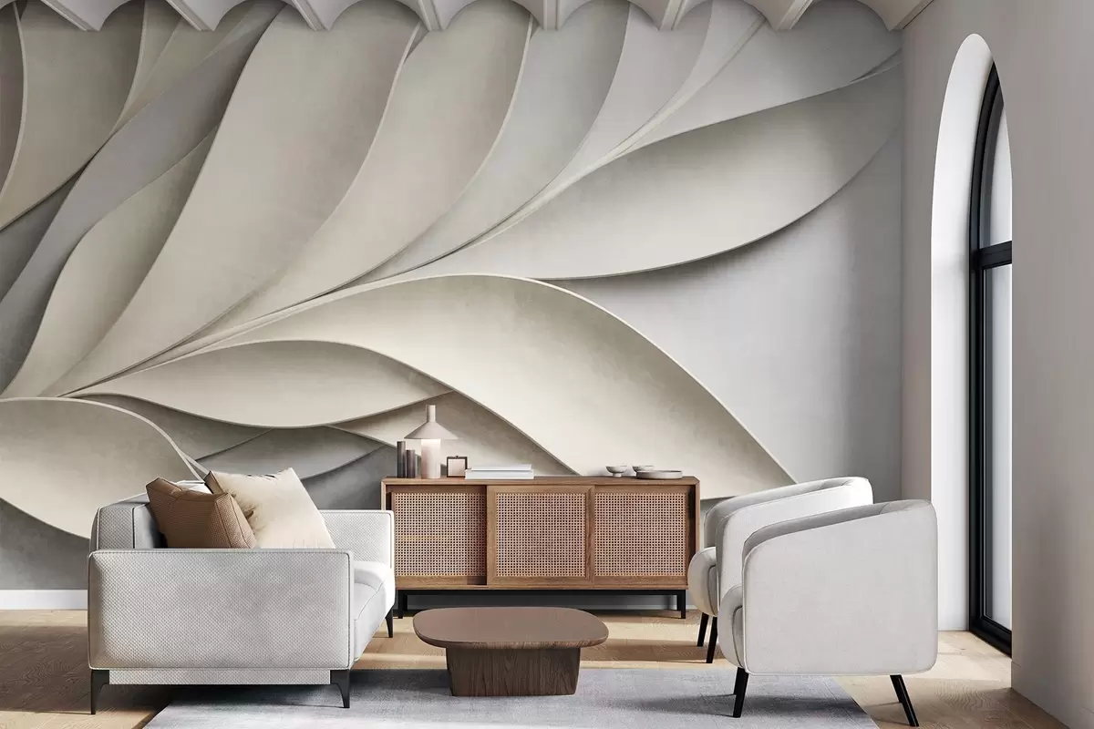 Papel de pared Hojas abstractas en beige y gris, arte moderno con textura. Nr. w09769
