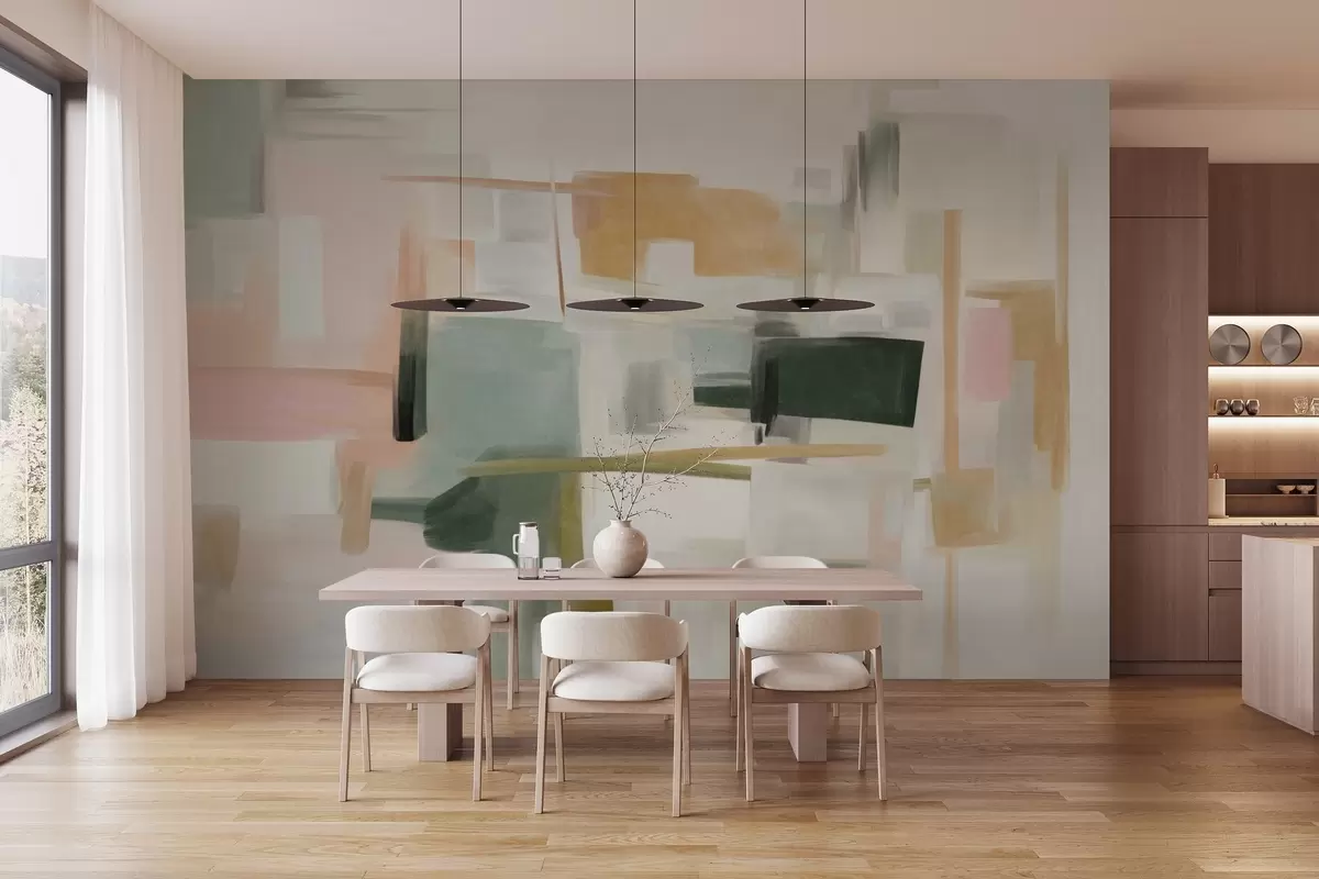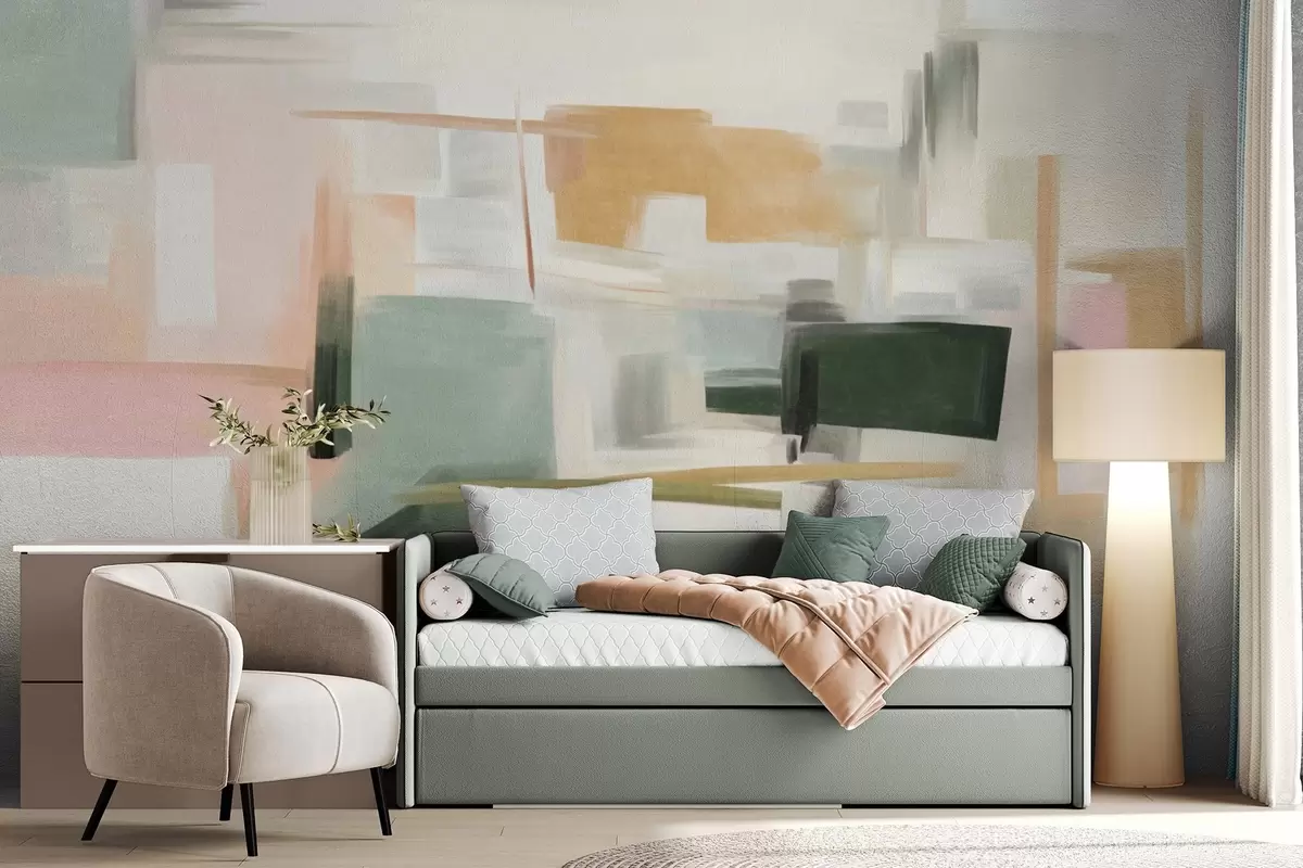 Papel de pared Estilo pictórico minimalista abstracto con suaves tonos pastel, formas geométricas y líneas Nr. w09828