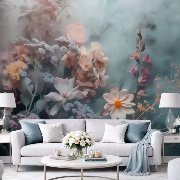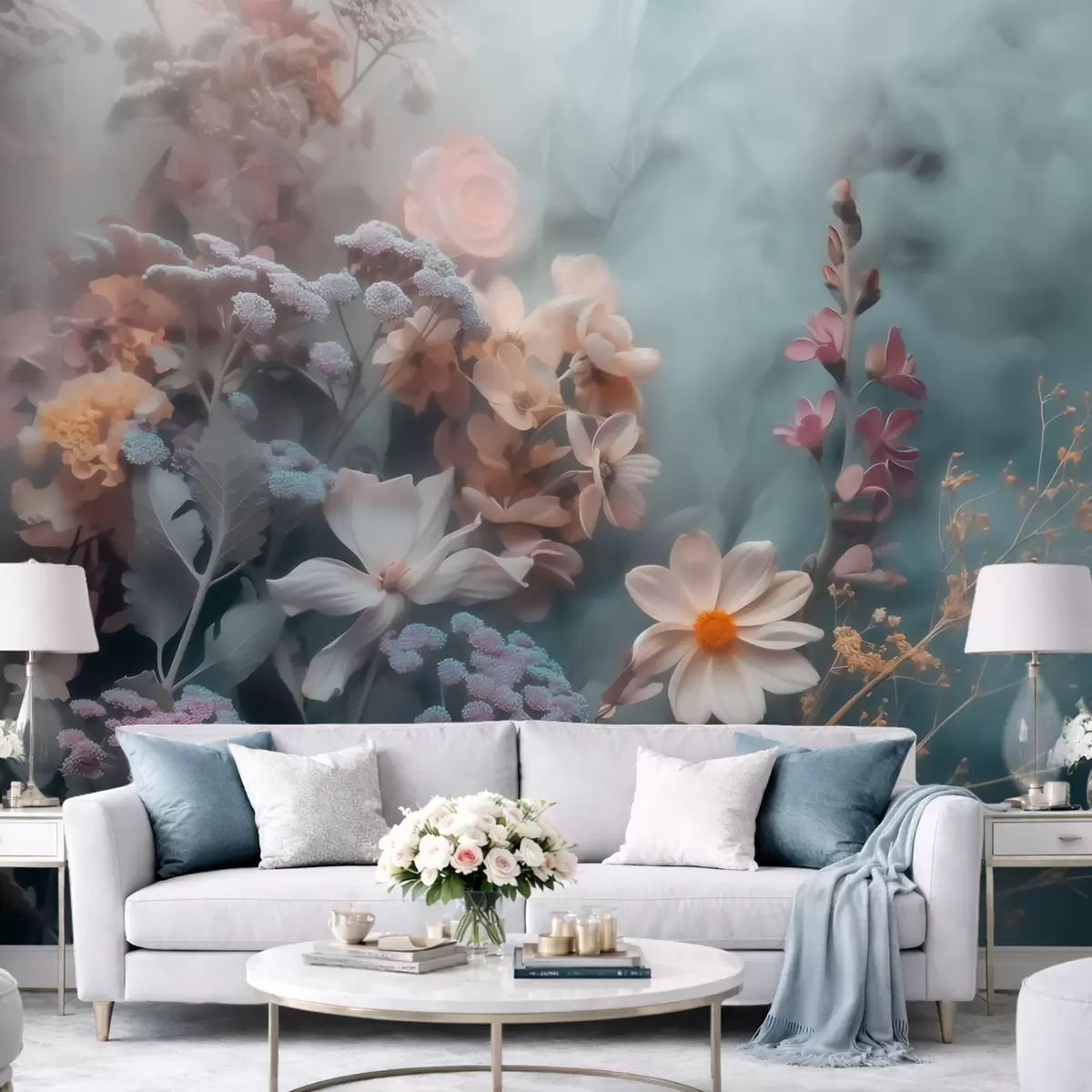 Papel de pared Una composición de ensueño de flores silvestres envuelta en una ligera bruma de tonos pastel Nr. w09846