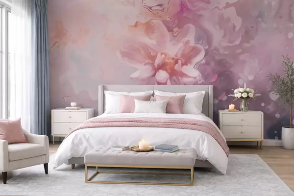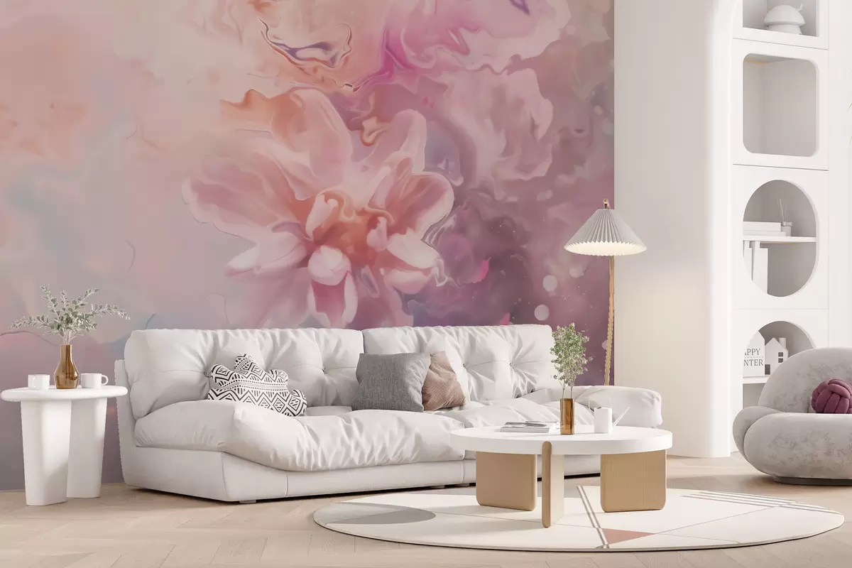 Papel de pared Una composición abstracta con una flor y suaves tonos rosados en estilo acuarela Nr. w09859